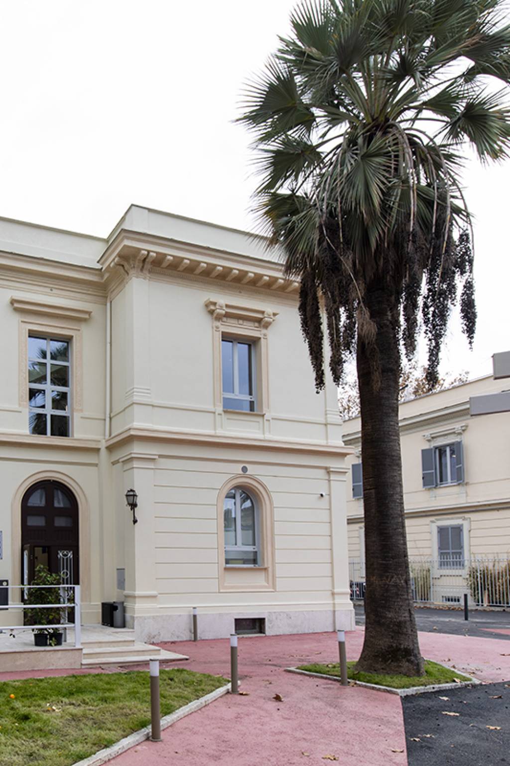 Il nuovo edificio rappresenta un elemento fondamentale della sede romana, trasformando l’attuale struttura in un vero e proprio campus, grazie anche a ulteriori spazi esterni, giardini e percorsi pedonali che collegano i due edifici. Gli spazi all’aperto sono stati pensati per offrire nuove aree per gli studenti, mentre le aiuole rientrano in un progetto più ampio di piantumazione in collaborazione con l’amministrazione Comunale. Progettato dallo studio di architettura DDArch, è un perfetto esempio di recupero di archeologia industriale pensato per mettere a disposizione non solo spazi confortevoli e funzionali alla didattica, ma anche tecnologie innovative in linea con le più recenti necessità di risparmio energetico. In classe energetica A+, il nuovo edifico è infatti dotato di un impianto fotovoltaico di pannelli solari in grado di fornire circa 20kW di energia, utili a soddisfare in piena autonomia le esigenze dell’intera struttura e lo svolgimento delle attività del campus.
