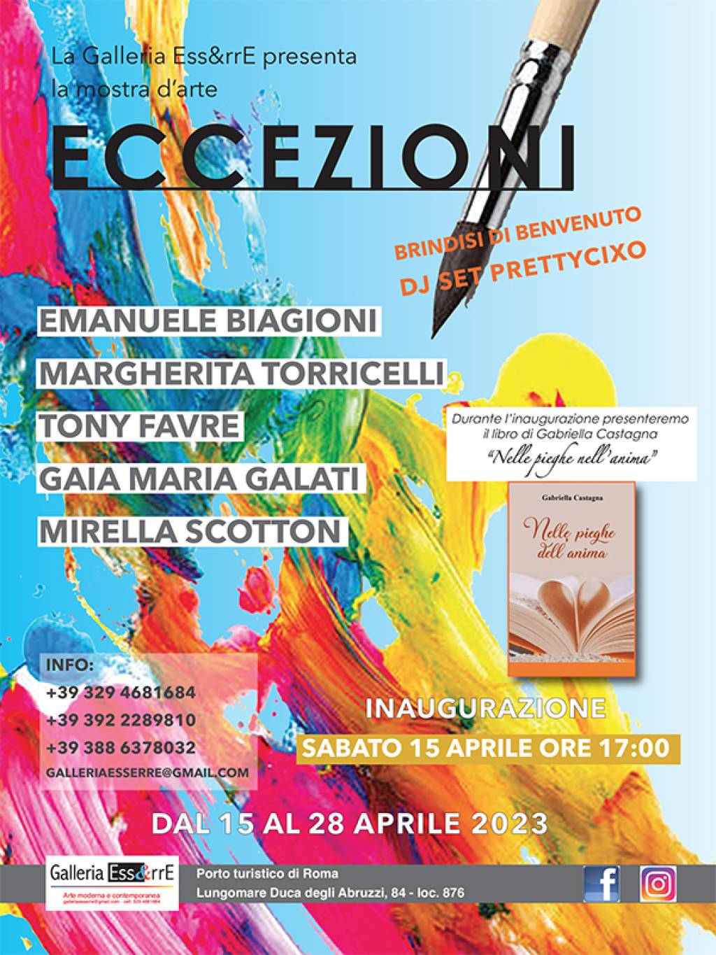 Il 15 aprile 2023 al Porto turistico di Roma, con le imbarcazioni che contornano la proposta culturale, apre i battenti alle ore 17:00 la mostra “ECCEZIONI” con cinque artisti, di cui una scultrice e una fotografa d’eccezione, provenienti da ogni parte d’Italia.