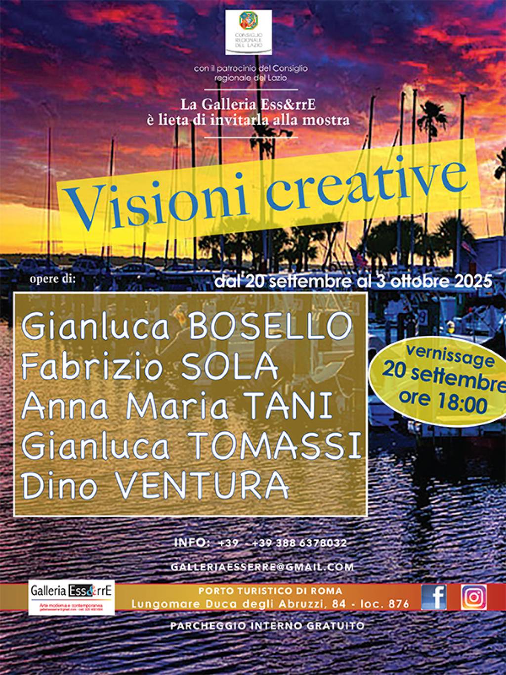 Dal 20 settembre al 3 ottobre 2025 in mostra alla Galleria Ess&rrE al Porto turistico di Roma locale 876 - 00121 Roma