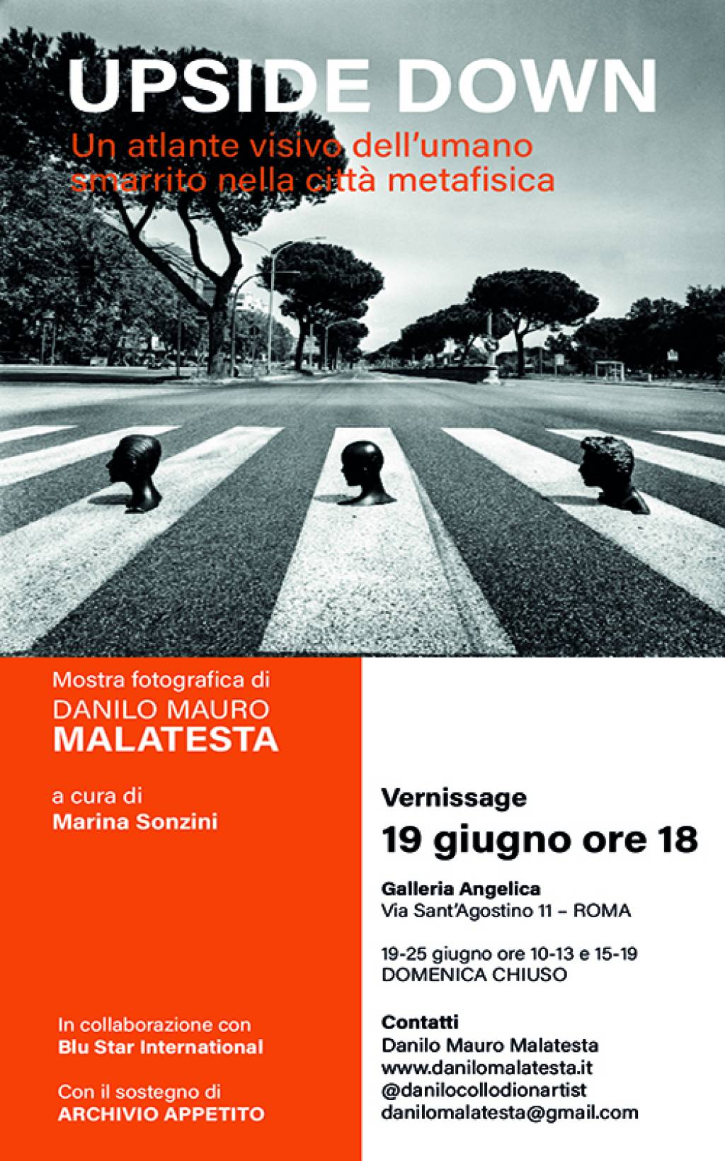 In quel vuoto, Danilo Mauro Malatesta si muoveva solo, disponendo figure senza vita – manichini – nei luoghi simbolici della città eterna: gambe capovolte, busti emergenti, teste senza sguardo.