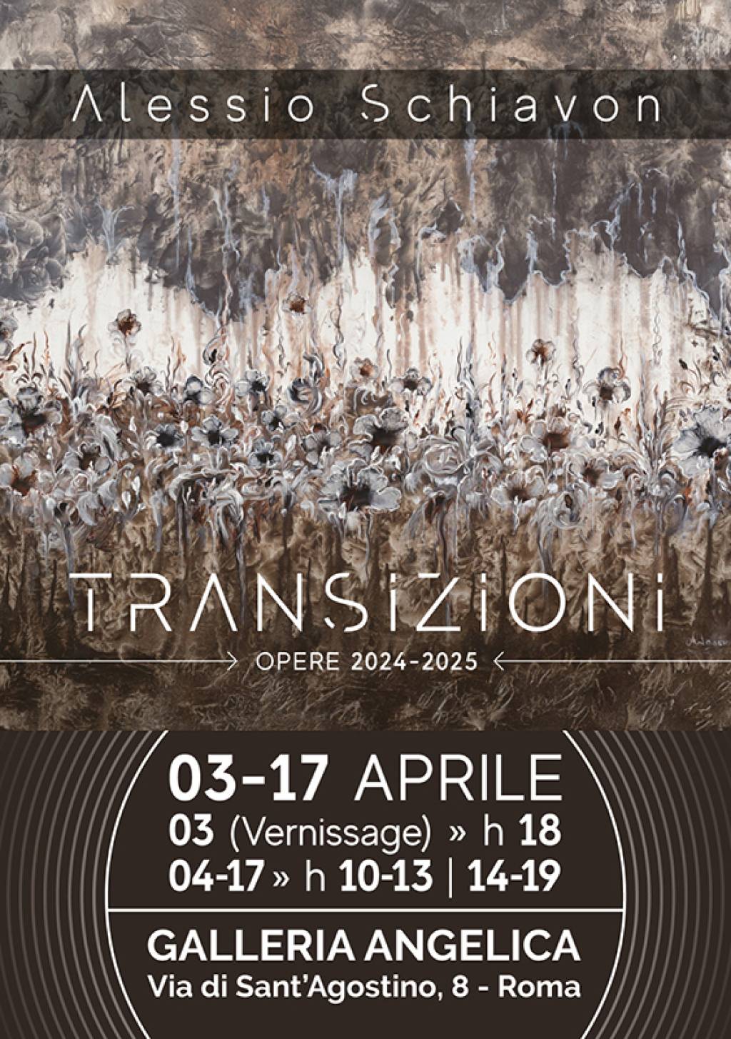 Le opere della nuova serie “Transizioni” di Alessio Schiavon saranno esposte in una personale di due settimane alla Galleria Angelica in Via Sant’Agostino a Roma dal 3 al 17 aprile 2025 (includendo quindi la domenica delle Palme), a pochi passi da Piazza Navona e accanto alla chiesa di Sant’Agostino, che custodisce la Madonna dei Pellegrini di Caravaggio e alla Biblioteca Angelica, la più antica biblioteca pubblica di Roma, due gioielli inestimabile valore. Ancora una volta con la curatela di Marina Sonzini e in collaborazione con Blu Star International di Roberto Sparaci. Nell’ Anno Giubilare dedicato alla Speranza, questo artista sensibile e raffinato ha voluto mettere sulla tela la sua idea di speranza, fatta di luce e di rinascita ciclica, di meraviglia e di fiducia nella vita. Vi aspettiamo a Roma con questo nuovo ciclo di opere e siamo certi che ancora una volta il linguaggio pittorico di Alessio Schiavon saprà incantarvi.