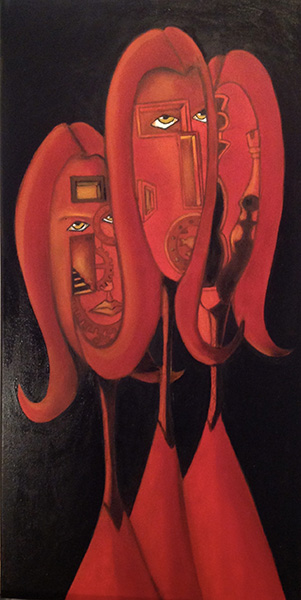 La mia attenzione è quindi rivolta all’essenza, all’anima, all’inossidabile energia vitale presente in tutto ciò che esiste.Le mie figure quasi fossero “MARIONETTE“ sono sole, come anestetizzate al centro dell’universo, prive di aiuti e supporti dove, in questa solitudine complessiva, il colore rivela sfumature della loro antica anima e primitiva personalità. Da qui, l’esigenza ed il piacere di descrivere il vero significato delle mie opere. In effetti per quanto semplicistico esso possa apparire è in sostanza molto più profondo, essendo questo, sintesi della mia esperienza artistica. Gli sfondi a plat presenti in quasi tutte le mie opere hanno un significato COMPLESSO ma INTUIBILE.
