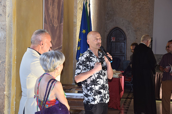 Il vernissage, peraltro, è stato impreziosito dalla presenza dell’Abate di Montecassino, don Luca Fallica che durante il suo intervento ha descritto perfettamente la poetica del Maestro, fornendo ai tanti ospiti presenti una lettura trascendentale delle opere a dir poco emozionante. Molto apprezzato è stato anche l’intervento di Andrea Succi, il figlio di Benvenuto, che anche a nome della madre, Caterina, ha raccontato alcuni episodi della vita del padre dai quali si è potuto comprendere ancor di più la ricerca artistica del padre.
